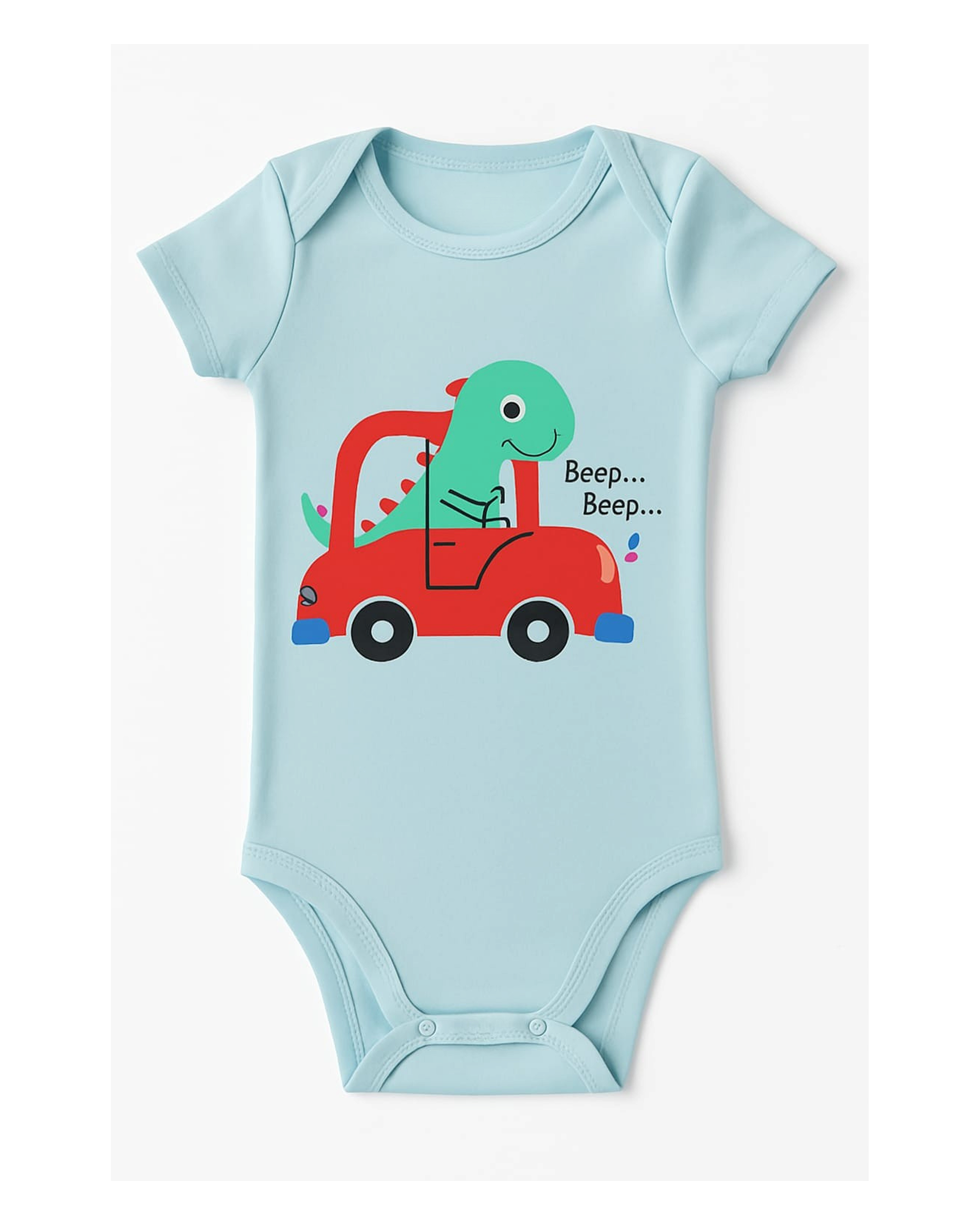BODY MANGA CURTA AZUL DINOSSAURO NO CARRO
