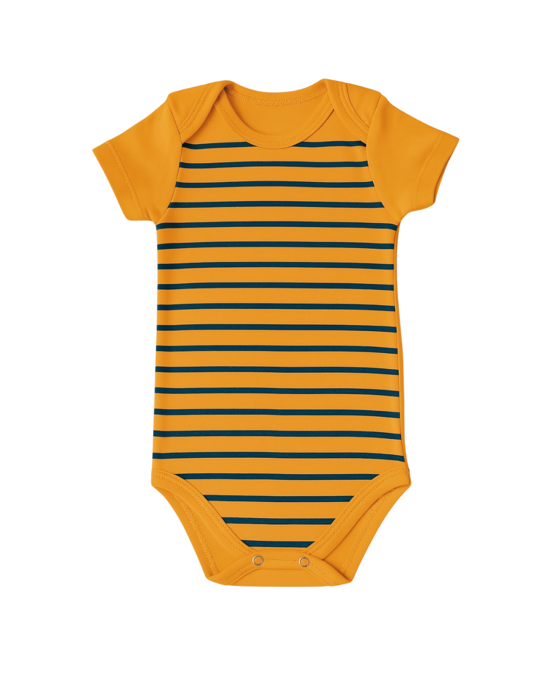 BODY MANGA CURTA TERRACOTA LISTRADO AZUL MARINHO