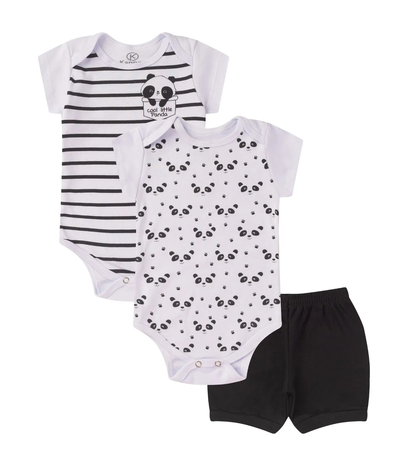 CONJUNTO 3 PEÇAS BODY E SHORT PRETO E BRANCO PANDA