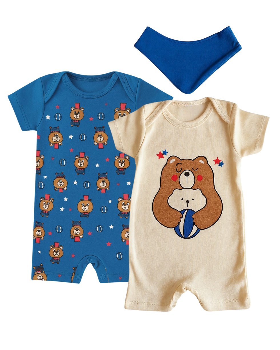 KIT ROMPER 2 PEÇAS AZUL E CREME URSINHO