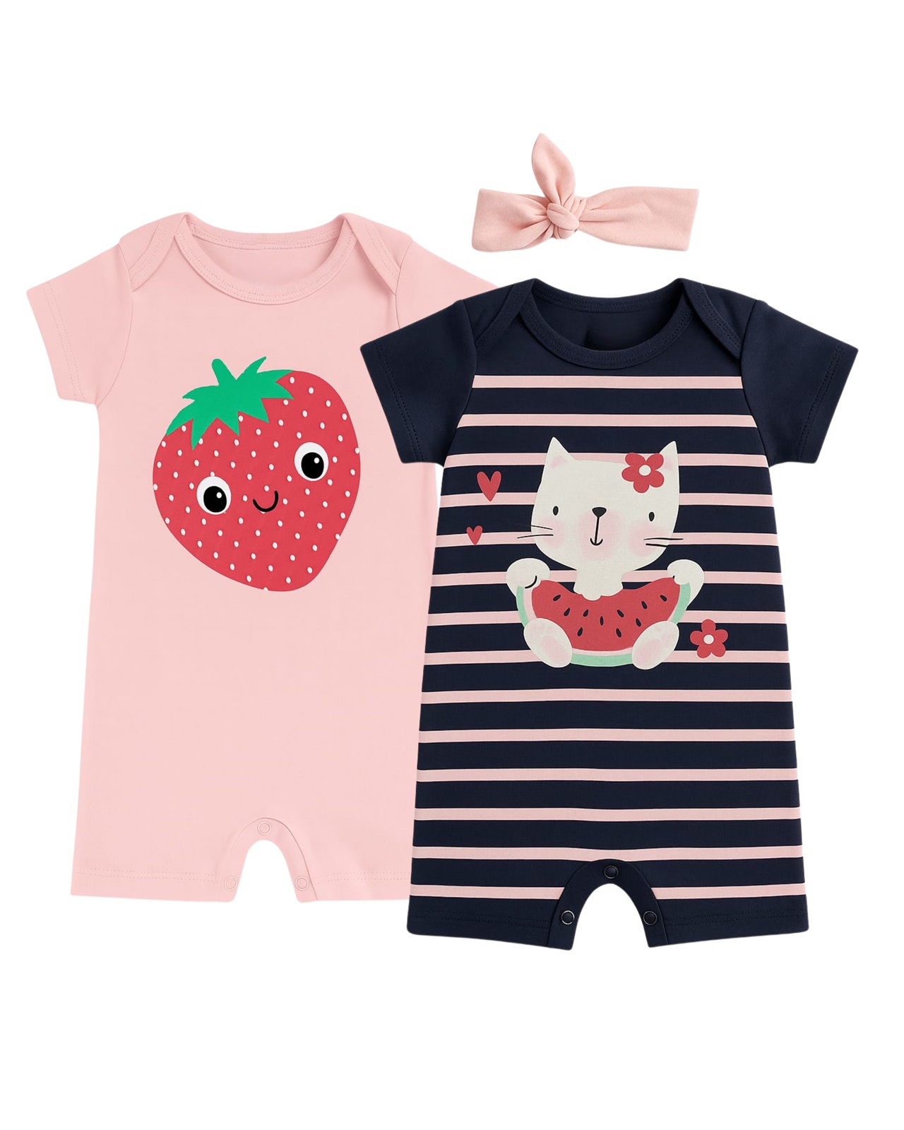 KIT ROMPER 2 PEÇAS ROSA E AZUL MARINHO MORANGO